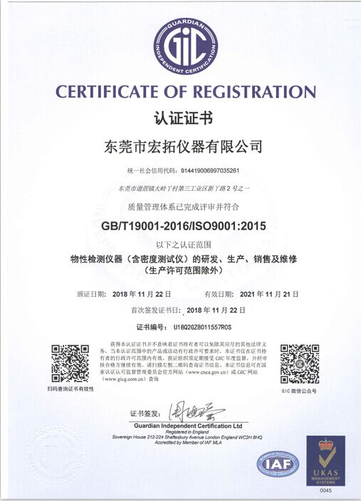 宏拓儀器通過ISO9001:2015質(zhì)量體系管理認(rèn)證,通過國家計(jì)量測(cè)試中心全面質(zhì)量與性能檢測(cè),獲得國家計(jì)量器具型式批準(zhǔn)CPA證書,參與起草制定: 【GB/T 1040.1-2025塑料 拉伸性能的測(cè)定】、【GB/T 1634.1-2025塑料 負(fù)荷變形溫度的測(cè)定】、【GB/T 44559.1-2024塑料 硬質(zhì)塑料沖孔性能的測(cè)定】 、【GBT 43139-2023鑄造鋁合金液減壓凝固試樣密度檢測(cè)】......等標(biāo)準(zhǔn)。